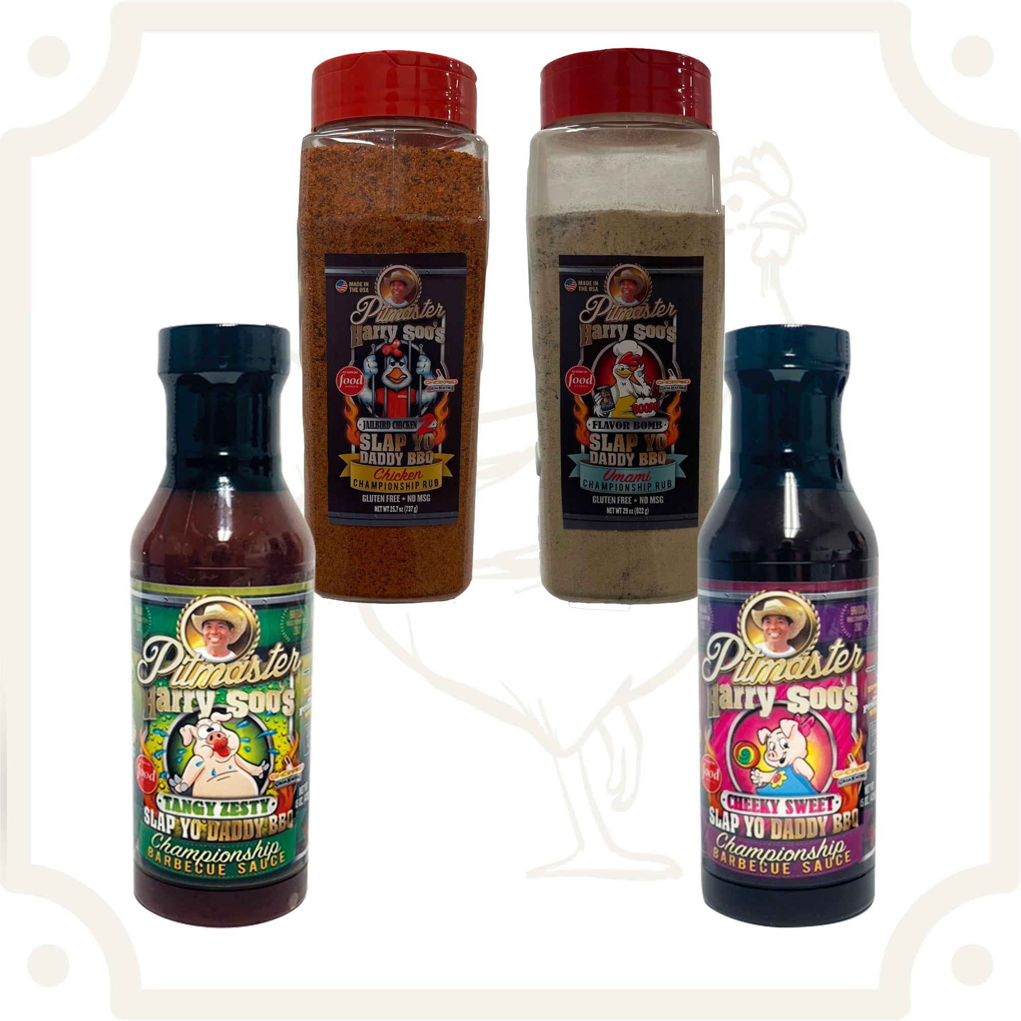 Slap Yo Daddy Chicken Competition Pack PLUS BBQ Sauces (4 Pack of Rubs plus BBQ Sauces: Jailbird Chicken v2.0 and Flavor Bomb Umami)