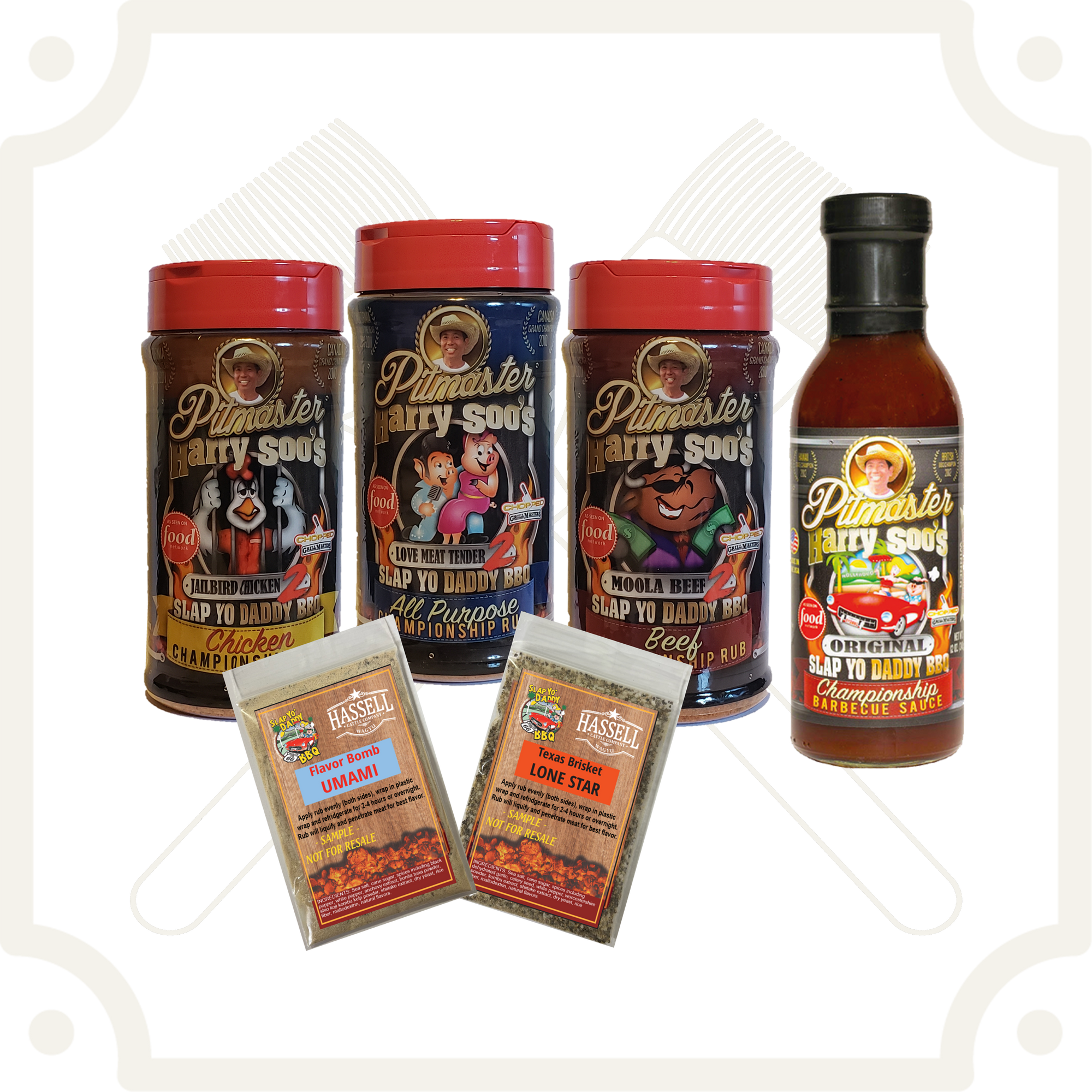 Impress your clients with all 3 of Harry's award-winning Original Rubs ("Love Meat Tender" All Purpose v2.0, Moola Beef v2.0, & Jailbird Chicken v2.0) PLUS 2 sample bags (Texas Brisket Magic Lone Star and Flavor Bomb Umami). Send them this special of 5 rubs & Original BBQ sauce for added extra flavor.
