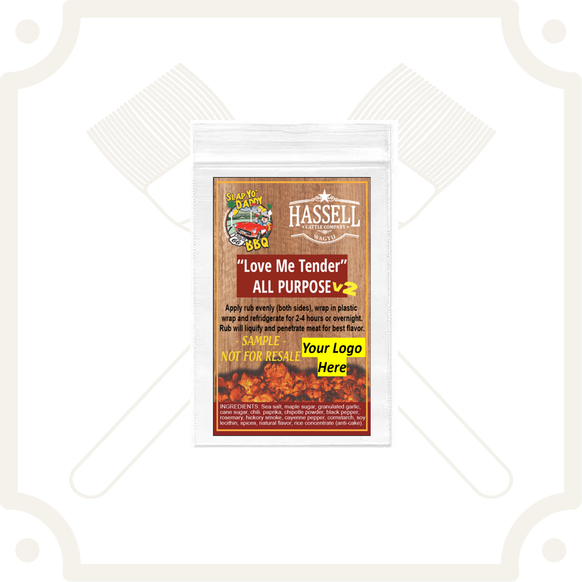 Slap Yo Daddy's Sample Bag with YOUR OWN Customized Labels - 1 oz: If you would like to provide your clients with samples of Harry's award winning rubs, here's a special for making your own sample bags with YOUR OWN customized labels for any of his rub flavors.